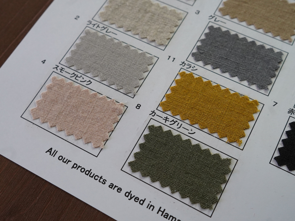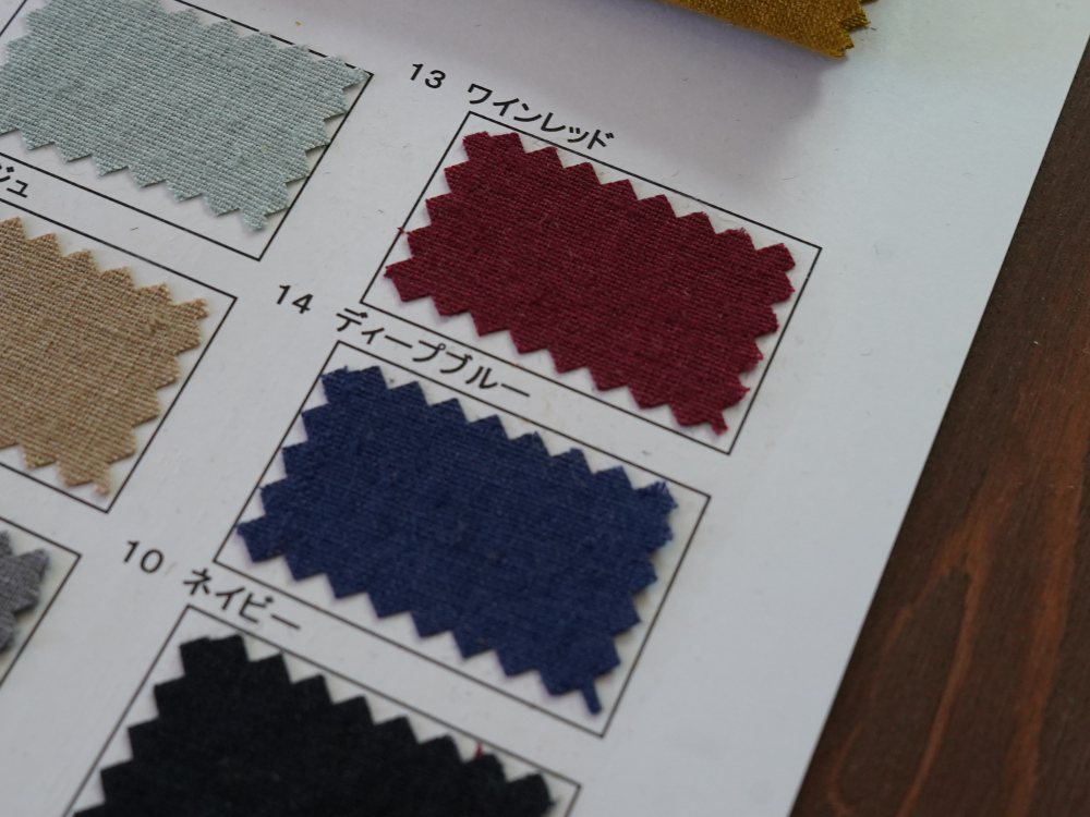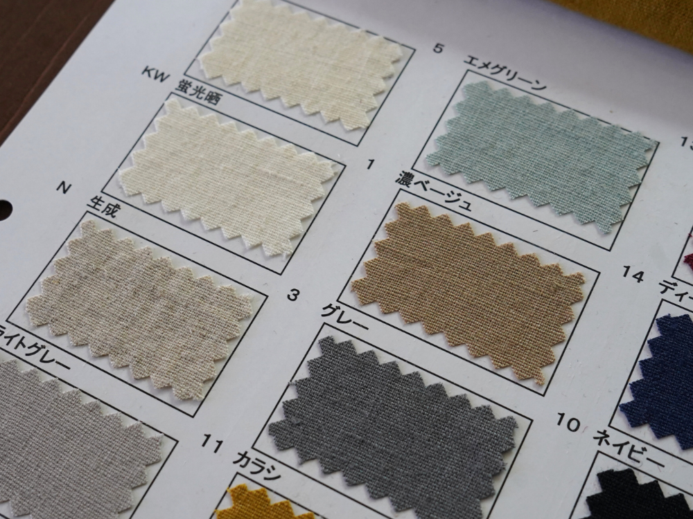 天然繊維特有の素材特性による微細欠点につきましては程度に関わらずノークレームにて予めご了承のほどお願いいたします。 商品の最新状況は営業までご確認ください。 やむを得ず廃色が発生する場合があります。 資料は手で作成しているため色番号、色名が不鮮明な場合があります。 ご了承ください。 資料の表面、裏面に記載してある特徴、注意点をご確認ください。 >>> 当ウェブサイトでは コットン(綿)、リネン(麻)、綿麻、ヘンプ、和紙、バンブー(竹)、レーヨン(ビスコース)、ナイロン、シルク などの素材を使用した生地をベースに 反応染料、硫化染料、顔料、墨(墨汁)、インディゴ、柿渋 などを使用した加工反を広く紹介しています 資料送付は無償です 是非、様々な生地をピックアップしてください |