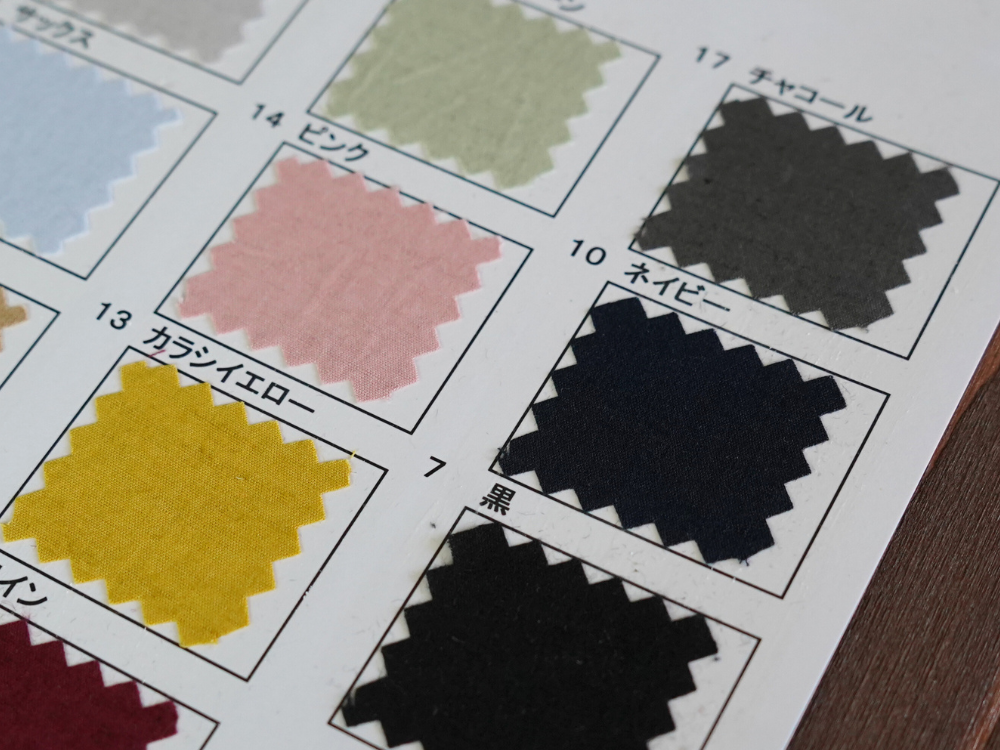 天然繊維特有の素材特性による微細欠点につきましては程度に関わらずノークレームにて予めご了承のほどお願いいたします。 商品の最新状況は営業までご確認ください。 やむを得ず廃色が発生する場合があります。 資料は手で作成しているため色番号、色名が不鮮明な場合があります。 ご了承ください。 資料の表面、裏面に記載してある特徴、注意点をご確認ください。 >>> 当ウェブサイトでは コットン(綿)、リネン(麻)、綿麻、ヘンプ、和紙、バンブー(竹)、レーヨン(ビスコース)、ナイロン、シルク などの素材を使用した生地をベースに 反応染料、硫化染料、顔料、墨(墨汁)、インディゴ、柿渋 などを使用した加工反を広く紹介しています 資料送付は無償です 是非、様々な生地をピックアップしてください |